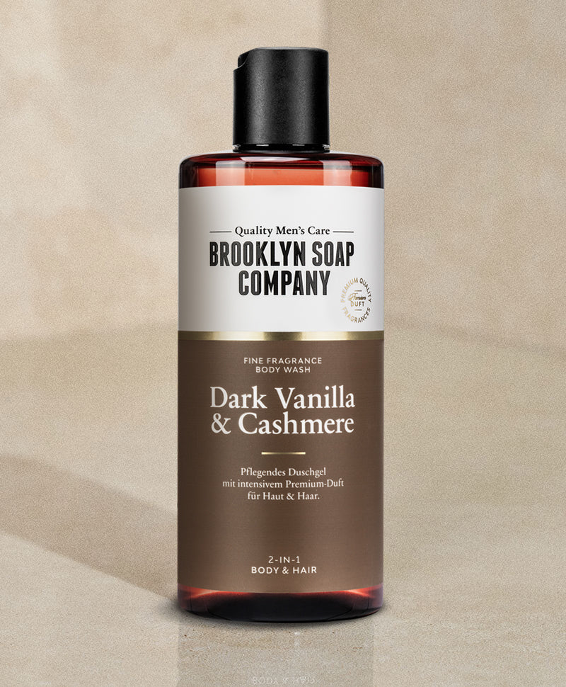 Du willst mehr als nur ein sauberes Gefühl unter der Dusche? Mit unserem Dark Vanilla & Cashmere Body Wash erwartet dich ein Duscherlebnis der Extraklasse. Hochwertige Duftöle sorgen für einen luxuriösen und intensiven Duft, der lange anhält. Gleichzeitig reinigen Vitamin E und Panthenol deine Haut und Haare gründlich und sanft, spenden Feuchtigkeit und hinterlassen ein gepflegtes Hautgefühl.